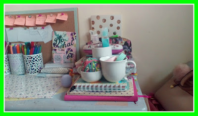 Corkboard- As I mentioned I love my corkboard as it keeps me so organised and whenever I think of an idea or something I need to do I can write it on a post it and just use a push pin and later I can write it neatly in my planner as I love my planner to be really neat and pretty to look at. The corkboard is from Wilko but I DIY-ed it using washi tape.
